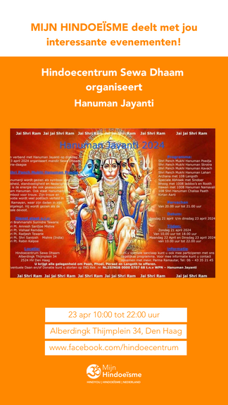 Dinsdag 23 april is het Hanuman Jayanti! Deze feestdag wordt in diverse mandirs gevierd door geheel Nederland!